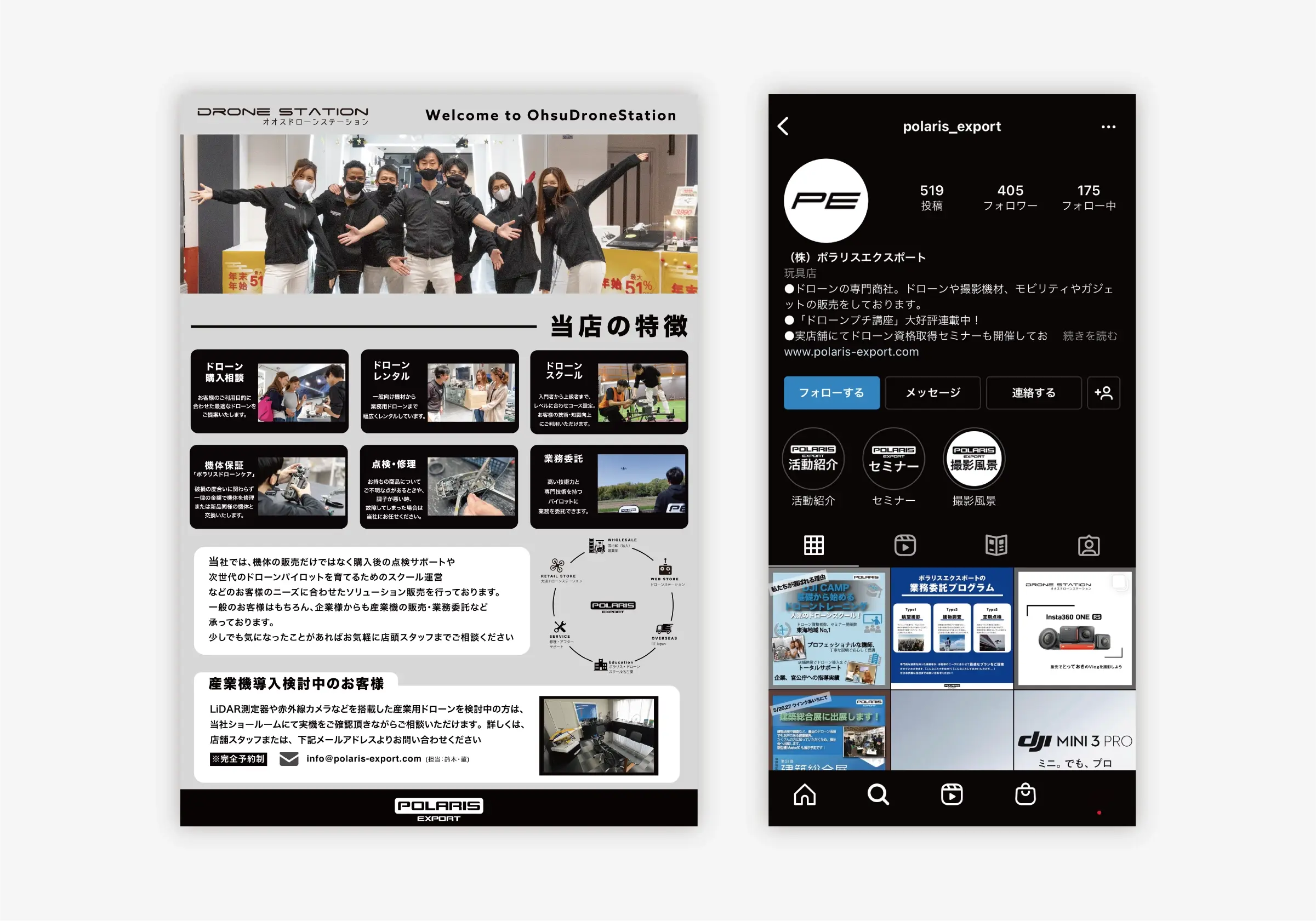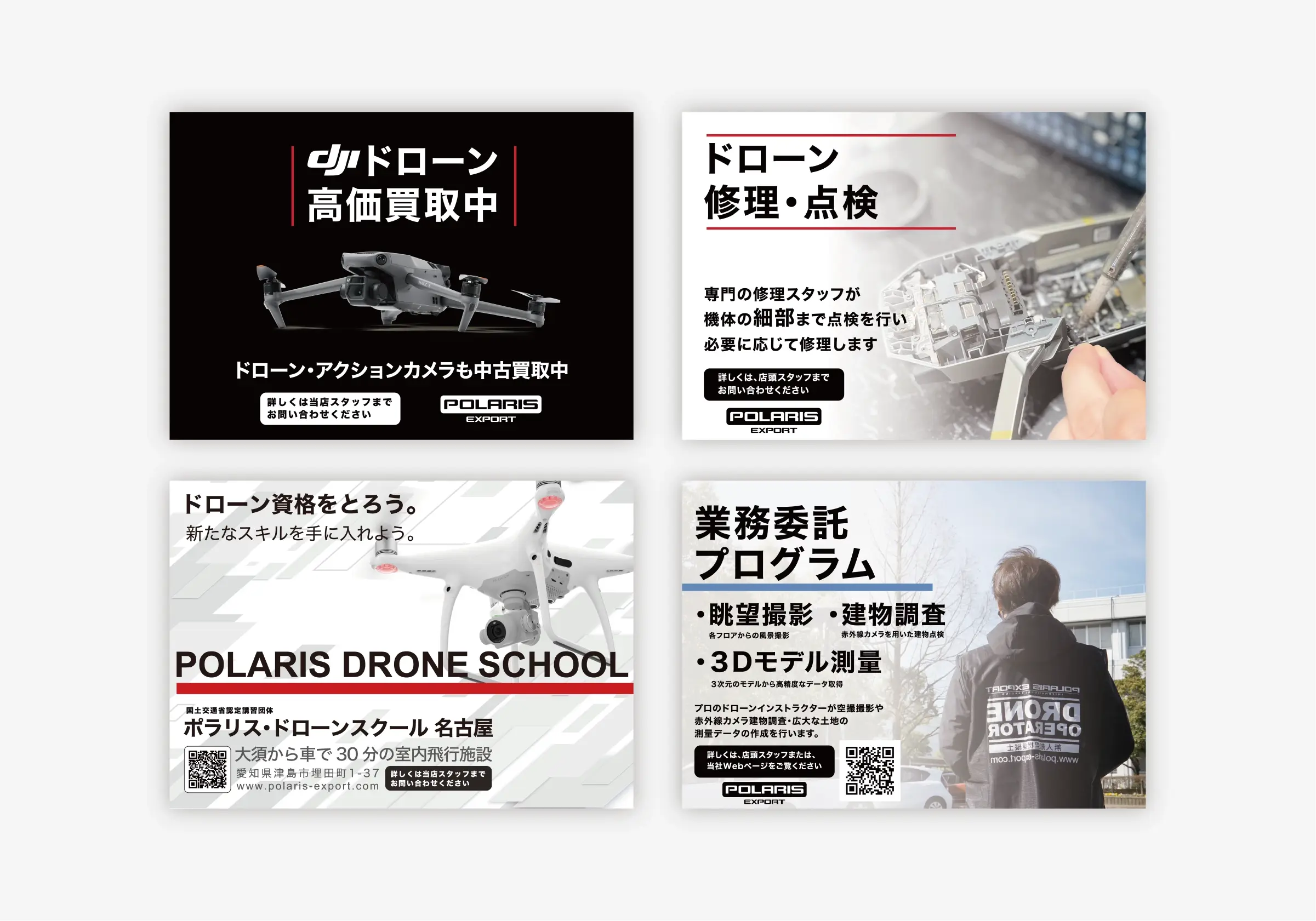 - 株式会社ポラリスエクスポート様にてクリエイティブ全般を作成いたしました。 ドローンという新たな分野での開拓なのでスタイリッシュかつ飾りのあまりないデザインに仕上げております。 また多数のIPからアプローチを仕掛け、どの媒体からもブランドイメージを確立しやすいようにしております。